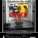 „Greed“ ist ein Stummfilmklassiker aus dem Jahre 1924 von Erich von Stroheim zum Thema der menschlichen Gier. Er handelt von einer Frau, die nach einem Lotteriegewinn geldbesessen ihre Beziehungen ruiniert und schließlich ihr soziales Umfeld verliert. Das Filmoriginal war länger als acht Stunden und setzte detailgenau den Roman „McTeague“ des amerikanischen Naturalisten Frank Norris filmisch um. Heute existieren nur noch circa zwei Stunden Filmmaterial. Stroheims ursprünglich episches Werk bestand aus 42 Filmrollen, daher hatte der ursprüngliche Director’s Cut eine Laufzeit von monumentalen 9 (!) Stunden. Nur 12 Personen haben diese Version bei einer MGM-Studiovorführung gesehen. Es war Stroheims Wunsch gewesen, den Roman von Frank Norrisso werksgetreu und ausführlich, sowie so realistisch wie nur möglich umzusetzen. Die Produzenten lehnten seine Vorstellung allerdings ab; einerseits waren sie der Ansicht, das Werk sei überladen und zu detailverliebt, außerdem erschien es ihnen in seinem Naturalismus überhöht. Noch dazu war „Gier“ in ihren Augen keine familienfreundliche Kinounterhaltung, da nicht nur kaputte Menschen und ihre persönlichen Abgründe gezeigt wurden, sondern auch die weibliche Hauptfigur den kapitalistischen Gral des Privateigentums negativ ins Lächerliche zog. Zunächst reduzierte von Stroheim das Filmmaterial selbst auf 24 Filmrollen, was noch etwa sechs Stunden entspricht. Schon dieser Schritt fiel ihm persönlich sehr schwer, er hoffte aber noch, so einen von ihm abgesegneten Kompromiss mit seinem Studio zu finden. Das Studio verlangte weitere Kürzungen. Strohheim äußerte sich zu einer 14 Rollen langen Fassung mit den Worten, sie sei „nur noch das Skelett meines toten Kindes“ (only the skeleton of my dead child).